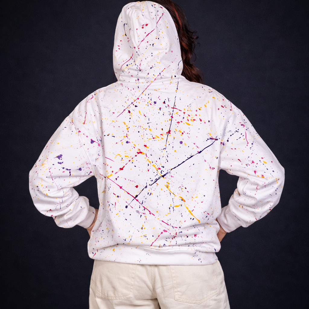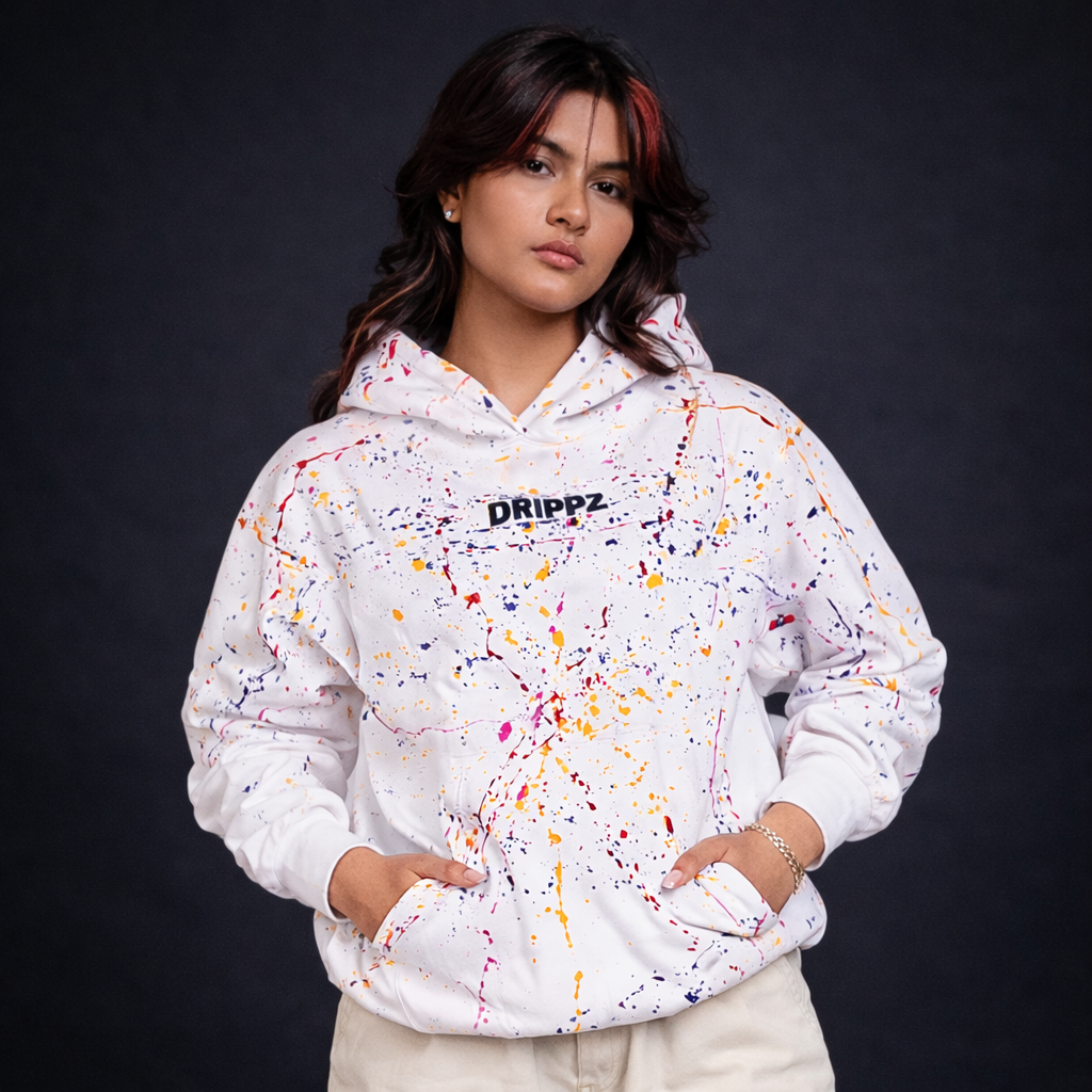 Experience bold streetwear style with the Colour Splash Abstract Oversized Hoodie, designed for ultimate comfort and unisex appeal. This White hooded hoodie features a vibrant paint splatter pattern, soft premium fabric and a relaxed oversized fit that elevates everyday fashion. Perfect for casual outings, layering and making a standout statement wherever you go.